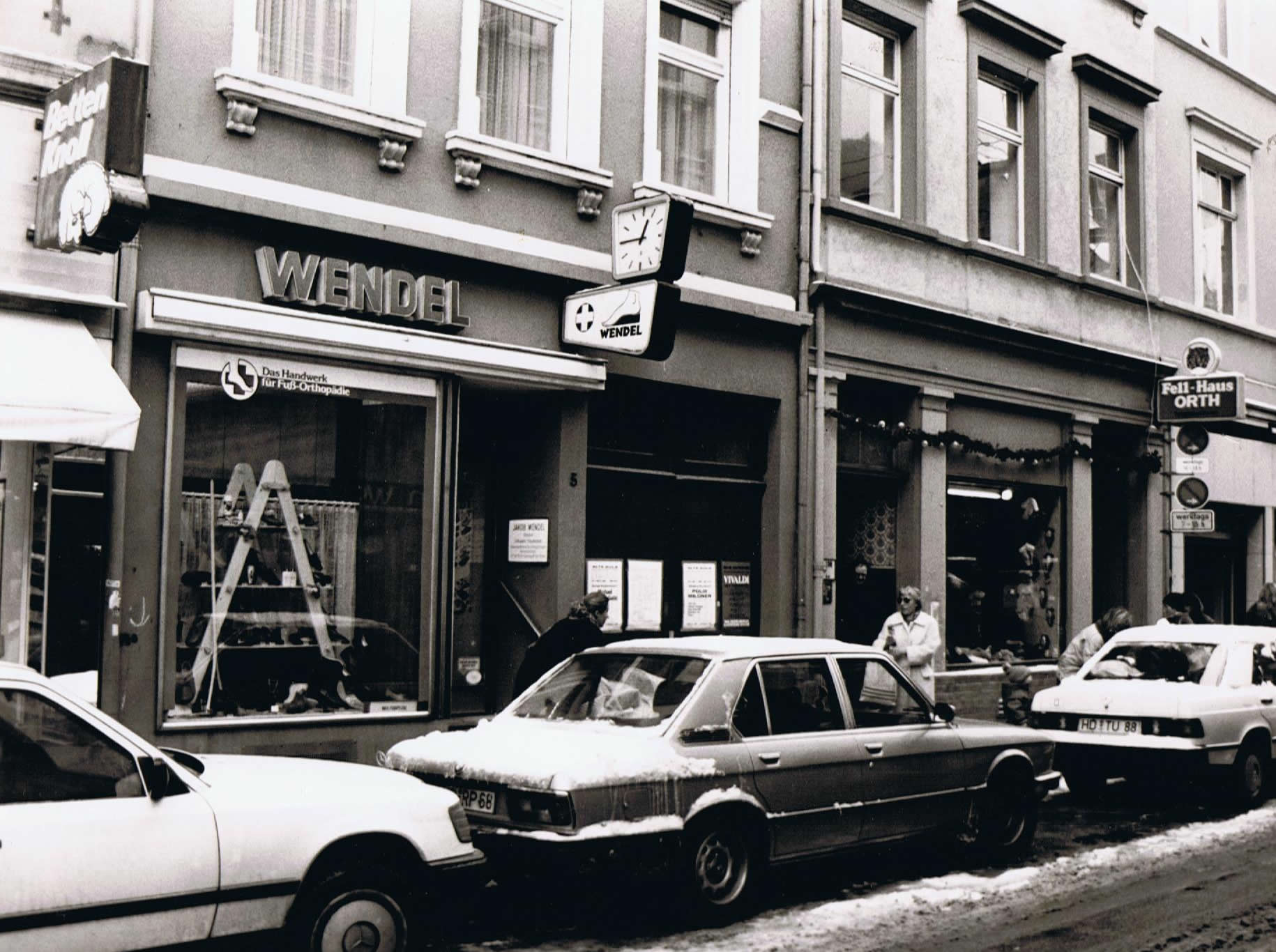 1921 gründet mein Großvater Jakob Wendel das Unternehmen in der Luisenstraße 14, in der Nähe der heutigen Atos-Klinik. Zu dieser Zeit ist es noch eine Schuhmacherei. Er führt das Unternehmen bis Mitte der 60er Jahre. Auf Grund der hohen Anzahl an Kriegsverletzten, erfolgt in den Jahren nach dem 2. Weltkrieg eine Orientierung hin zur Anfertigung von orthopädischen Schuhen und Einlagen.